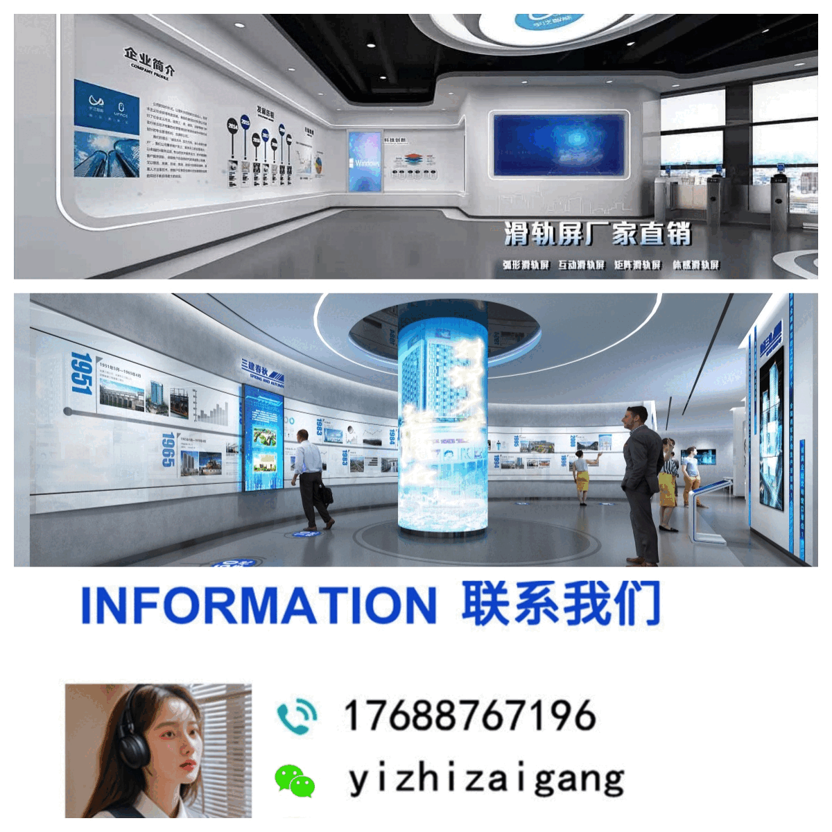 滑轨屏将实体产品、图纸线稿等内容以全新的方式展现在参观者面前,打破传统电子展播的束缚,让展示内容“活”起来,更具兴趣性及科技感。 什么是滑轨屏? 滑轨屏又叫移动滑轨屏、推拉屏等,是通过在布置好的轨道上安装好传感电路装置,同时在其展示墙面上设置不同的触控点位,当用户推动滑轨屏至相应的感应点位时,传感信号会被触发,滑轨屏就会展示相应的内容,以此来为用户介绍相关信息,包括图片、文字、视频等,是一种全新的互动展示形式。 滑轨屏一举打破了传统展览的单调枯燥局面,以多媒体交互的设计可以对传统展厅展馆建设成多媒体互动展示的模式,在展厅里面给参观的人员带来有特别创意的展示,滑轨屏还增加了一种可操控移动的功能,可以让参观人员更加方便去互动操作,增强对宣传内容更加深刻的了解。 产品优势 1、信息量大:互动滑轨屏能展示更多丰富的信息,用户能够深入了解企业内容。 2、互动性强:创意的互动方式,让互动滑轨屏系统能够加深用户的印象。 3、自动化控制:自动化控制的互动滑轨屏将为用户提供便利性的内容展示。 4、立体化展示:滑轨屏系统内容立体化的展示方式可以很好地活跃场所氛围。 5、信息明确:清晰明了的互动滑轨屏展示方式,用户可以快速了解产品信息。 6、节省成本:让信息形象的展示在屏幕上,进行智能解说,节省解说员的成本。 产品功能 1、移动交互:观众用手推动、触摸、遥控液晶屏移动,即可切换播放内容。 2、触摸系统:支持触摸屏互动,然后通过不同触点可以让液晶屏显示相对应的不同内容,并且可以对内容放大、缩小、旋转等一系列互动。 3、存储功能:表现形式多样,而且内容主富,播放画面与背景墙内容紧密结合应用范围和产品功能。 4、自动巡航:在技术的持续发展下,新款的互动滑轨屏开始被赋予自动巡航的功能特点,通过对滑轨互动系统的技术调整,当用户点击某一选项时滑轨屏可以匀速完成整个展项的交互展示,这要比一个节点展示完成再点击操作更加便捷,其也因此成为了数字多媒体展厅中的热门展示。 5、形式多样:可根据场地需求选择定制直线滑轨、弧形滑轨、圆形滑轨或落地滑轨四种类型,同时具备科技感与美感。 6、待机屏保:为了让数字多媒体展厅时刻保持活性,互动滑轨屏即使在无人使用的待机状态,其显示屏屏保也是动态的,这即为大众呈现了相应的信息,也能让展项不失单调,以此吸引更多用户。 应用场景 滑轨屏除了在展厅被广泛应用,还可以应用于博物馆、企业展厅、博物馆、科技馆、数字展览馆等多个行业和场景中,因其大屏储存的信息量较大,所以它相较于单纯的文字图片更能节省空间。在一些需要串联时间线的内容上,滑轨屏是十分合适的展示多媒体。 滑轨屏还能结合虚拟主持人,对展示内容进行详细的介绍,让参观者对展示内容一目了然。交互式的体验和没有顿挫感的滑轨组件也能使参观者更加沉浸于展示内容,加深用户对内容的印象,更好地开展科普和宣传。 滑轨屏集趣味性、交互性、娱乐性、实用性等多种效果为一体,使互动的体验更加有趣,令人惊叹的静动态影像交互得以实现,是传统的内容“活”了起来,同时具备更强大的广告及展示效果。