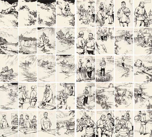 范曾 关景宇 1968年作 《门合同志英雄事迹》连环画原稿 16×22cm×19