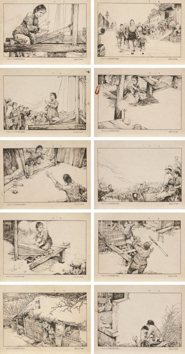 施大畏 连环画稿《一台织布机》 镜心 19×25cm×11